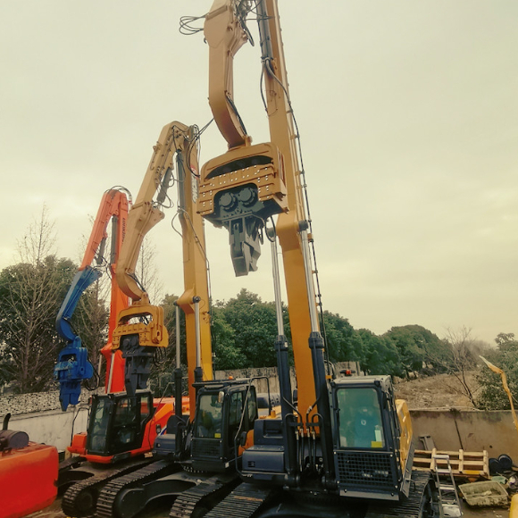 - 掘削機に搭載されたパイルドライバー